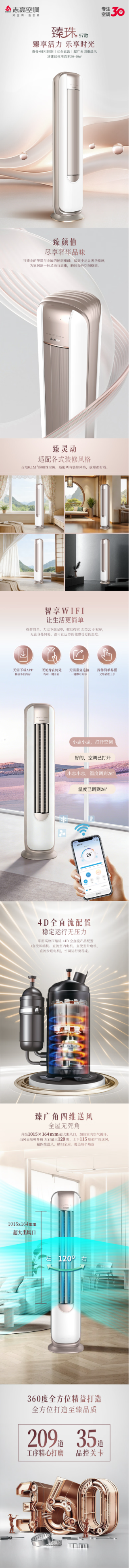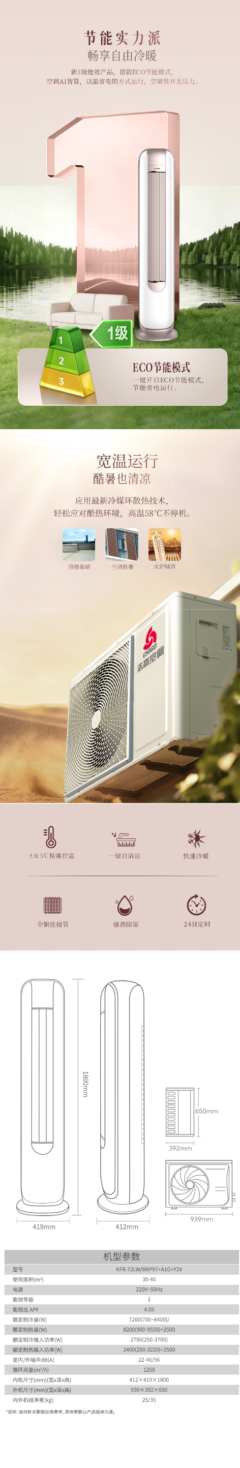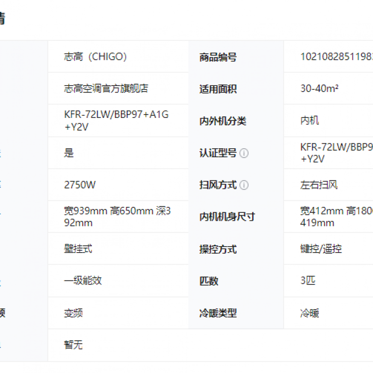 志高空调3匹KFR-72LW/BBP97+A1G+Y2V 新一级能效变频冷暖超节能省电 静音 自清洁 臻享 双温 智享WIFI BO